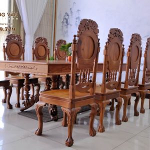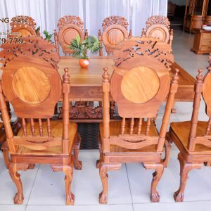 • Kích thước: bàn – 217x107x78cm, ghế- 46x49x123cm, trạm hoa văn