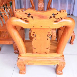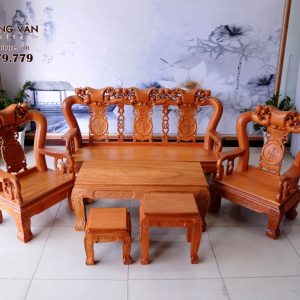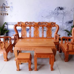 Đặc biệt, chân ghế và chân bàn với họa tiết rồng phượng hoàng gia bay bổng là điểm nhấn thu hút đặc biệt cho bộ salon này. Sự kết hợp hài hòa giữa phong cách hiện đại và sự trang trí tinh xảo tạo nên sự cuốn hút không gian sống, đáng để sở hữu và thưởng thức trong không gian gia đình.