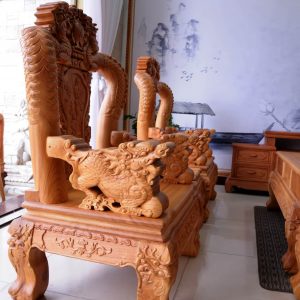 Bộ bàn ghế SLGR006 được chạm khắc tinh xảo với họa tiết Bát Tiên – hình ảnh 8 vị tiên trong văn hóa Trung Hoa. Họa tiết này không chỉ đơn thuần là một nét trang trí mà còn mang ý nghĩa phong thủy sâu sắc. Bát Tiên là biểu tượng cho sự trường thọ, tài lộc và bình an. Mỗi vị tiên đại diện cho một nguồn năng lượng tích cực, mang lại phước lành và may mắn cho gia chủ. Khi đặt bộ bàn ghế này trong phòng khách, bạn không chỉ làm đẹp không gian sống mà còn góp phần thu hút vận may và tài lộc.