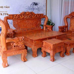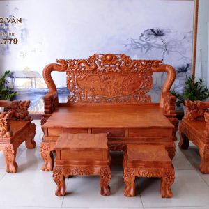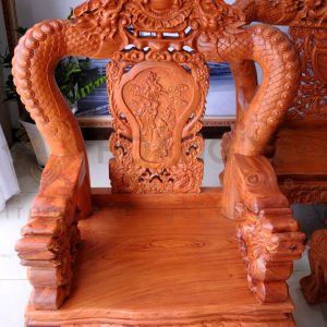 Họa tiết rồng trên bộ salon hương đá không chỉ đơn thuần là một yếu tố trang trí, mà còn mang trong mình ý nghĩa sâu sắc trong văn hóa Á Đông. Rồng được coi là biểu tượng của sức mạnh, quyền lực và sự thịnh vượng. Trong thiết kế, họa tiết rồng bay, ôm bo uốn lượn trên phần tay ghế và lưng ghế tạo nên một nét đẹp vừa mạnh mẽ vừa mềm mại, thể hiện sự uyển chuyển và hùng vĩ.