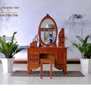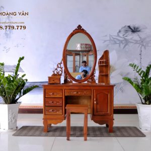 Bàn Trang Điểm Gỗ Tự Nhiên Căm Xe Hình Oval Đẹp BPC004/1 Mua bàn trang điểm gỗ tự nhiên Căm xe Oval tại Hoàng Vân