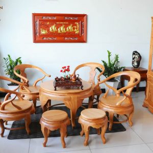 Đôn lớn, có đường kính 35cm và chiều cao 40cm, là một phụ kiện linh hoạt, có thể sử dụng như một bàn phụ hoặc đơn giản chỉ là một điểm nhấn thú vị trong không gian. Với những kích thước này, bộ sản phẩm không chỉ đáp ứng nhu cầu sử dụng mà còn tạo nên sự cân đối và hiệu quả trong bố trí nội thất.