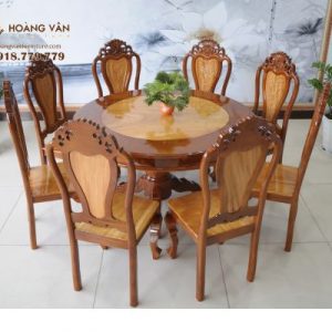 Bộ bàn ăn 8 ghế tròn BAC8G005 được làm từ chất liệu gỗ căm và gỗ gõ tự nhiên
