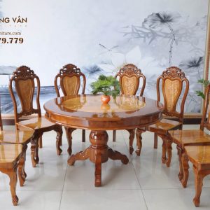 Bộ bàn ăn gỗ căm 8 ghế tròn BAC8G005 với nhiều đặc điểm nổi bật
