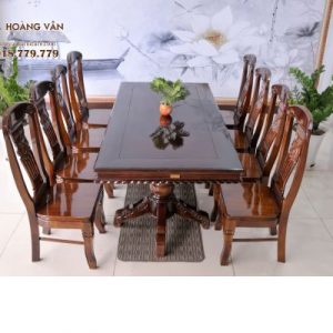Bộ bàn ăn gỗ tràm họa tiết rồng BAT8G003 không chỉ là một bộ bàn ăn thông thường mà còn là một tác phẩm nghệ thuật gỗ đầy tinh tế và ấn tượng. Sự sắp xếp khéo léo của 8 ghế đơn xung quanh bàn hình chữ nhật 90×180 tạo nên không gian đặc biệt, phù hợp cho các buổi ăn uống của gia đình đông người.