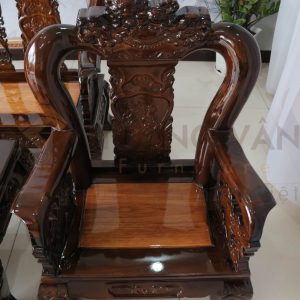 Nghệ thuật họa tiết nghê trên sản phẩm được thực hiện tinh tế và độc đáo, tạo nên sự tinh tế và sự đặc biệt cho bộ bàn ghế. Họa tiết nghê tái hiện hình ảnh nghê trên bề mặt gỗ một cách sinh động và tinh xảo, làm nổi bật vẻ đẹp tự nhiên của gỗ và giá trị nghệ thuật đích thực.