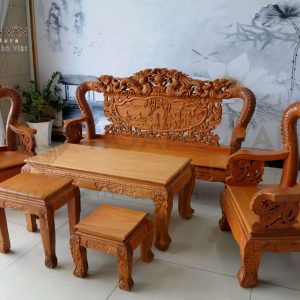 Bộ Bàn Ghế Salon Gỗ Gõ Họa Tiết Rồng Tay 12 6 Món SLGR002 không chỉ là sản phẩm nội thất thông thường mà còn là tác phẩm nghệ thuật, thu hút sự chú ý của những người đam mê phong cách cổ điển. Sự phổ biến của mẫu salon này đã trở thành một cách để tạo nên không gian sống phong thủy hài hòa.