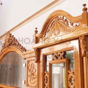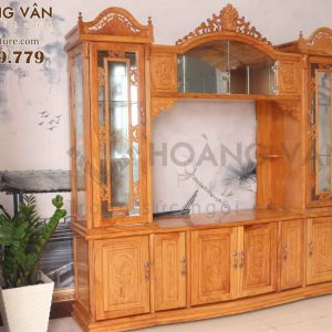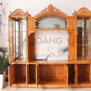 Về cấu tạo, kệ tivi gõ Nữ hoàng bao gồm 6 hộp tủ lớn, 2 hộp tủ nhỏ, 3tủ kính trưng bày, và một ngăn rỗng đặt tivi siêu đẹp. Kích thước của chiếc kệ tivi kết hợp tủ trang trí khá lớn nên phù hợp với những gia đình có diện tích rộng, thoải mái.
