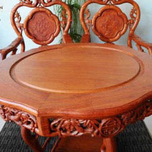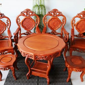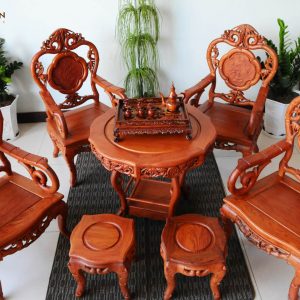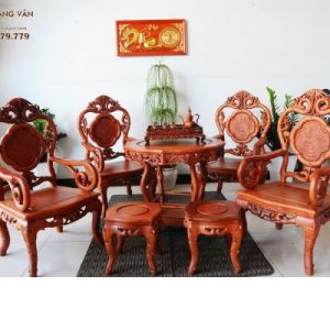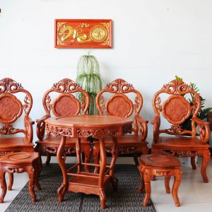 Bàn ghế salon gỗ hương đá SLHD004 với 6 món là sự hòa quyện hoàn hảo giữa vẻ đẹp tự nhiên của chất gỗ hương và tính tiện nghi trong thiết kế. Bộ sản phẩm này bao gồm 1 bàn tròn, 4 ghế tựa và 2 ghế đôn, tạo nên một không gian ấm cúng và đẳng cấp cho ngôi nhà của bạn.