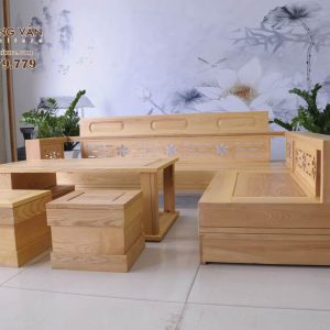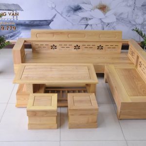 Bộ Sofa L Gỗ Sồi Họa Tiết Hoa Mai SLS009 làm từ chất liệu gỗ sồi