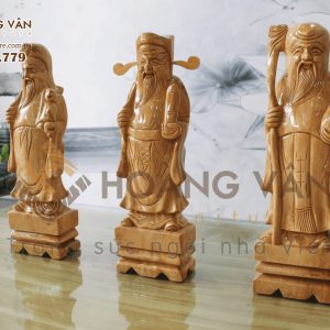 Bộ tượng được thiết kế tỉ mỉ, thể hiện sự khéo léo và tâm huyết của nghệ nhân. Hình tượng Phúc, Lộc, Thọ không chỉ mang ý nghĩa phong thủy sâu sắc mà còn tạo nên nét thẩm mỹ độc đáo cho không gian.
