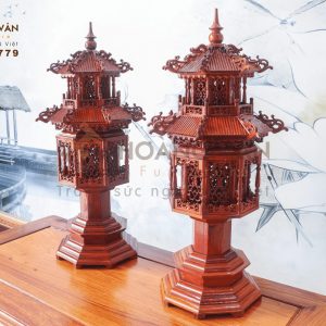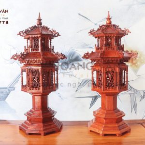 Miêu Tả: sản phẩm được làm bằng gỗ hương cao cấp. sản phẩm có dạng hình mái chùa cổ kính. bên trong có bóng đèn điện. quá trình làm cẩn thận, tỉ mỉ.