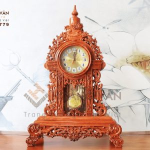 Đồng hồ gỗ để bàn đục tinh tế và sắc nét, bên cạnh đó còn giúp cho may mắn và đem tài lộc về cho gia chủ.