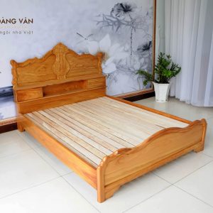 Giường gỗ gõ tự nhiên cao cấp GG007 còn nổi bật với những đường nét trang trí tinh tế và bắt mắt. Các họa tiết uốn lượn được chạm khắc tỉ mỉ, tạo nên vẻ đẹp ấn tượng cho sản phẩm.