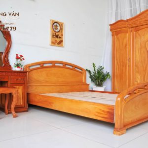 Với kích thước tiêu chuẩn 1m8 x 2m, giường ngủ gỗ gõ này rất phù hợp cho những căn phòng có diện tích từ vừa phải đến lớn. Thiết kế đơn giản giúp sản phẩm dễ dàng kết hợp với nhiều phong cách nội thất khác nhau, từ hiện đại đến cổ điển.