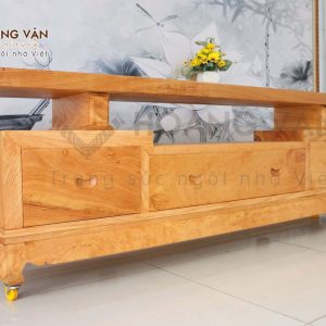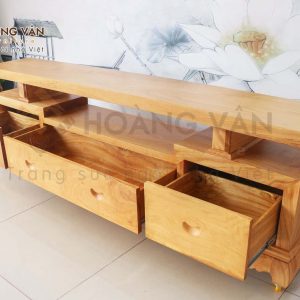 Ngoài ra, gỗ gõ đỏ còn có độ cứng và khả năng chịu lực tốt, cho phép kệ tivi dễ dàng lưu trữ các thiết bị điện tử nặng mà không lo lắng về việc cong vênh hay gãy gập. Với những ưu điểm này, kệ tivi CTVGCQ001 không chỉ là một món nội thất tiện ích mà còn là một tác phẩm nghệ thuật, tạo nên không gian sống ấm cúng và tinh tế.