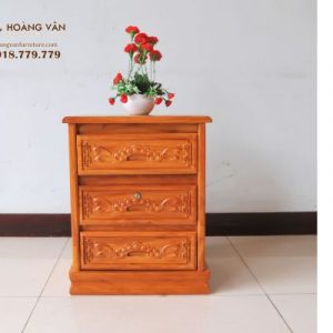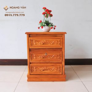 Với 3 hộc, bạn có đủ không gian để đựng đồ cá nhân và các vật dụng nhỏ khác trên chiếc tủ nhỏ đầu giường này. Thiết kế chạm trổ hoa văn tinh tế và đường viền quanh mỗi hộc kéo tạo nên vẻ đẹp độc đáo.