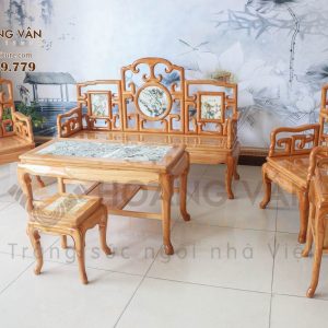 Salon Gỗ Gõ Mặt Đá Cổ Điển – SLG032