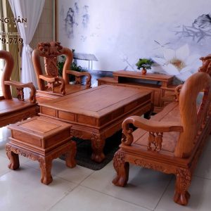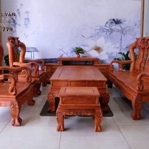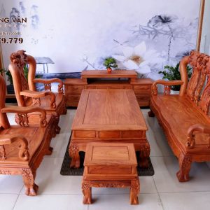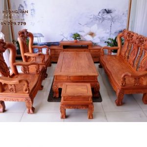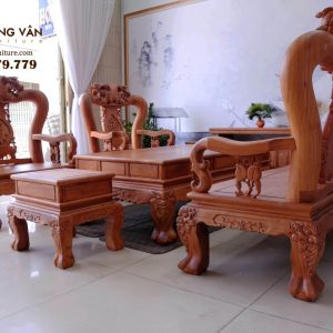 Salon Gỗ Hương Đá Họa Tiết Đào Tay 12 6 Món SLHDD006