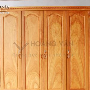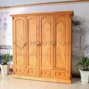 Tủ gỗ cao cấp gõ dày thiết kế kích thước 2x2m với 4 cánh lớn với kích thước đồng đều nhau. Trên tủ không có họa tiết chạm khắc tỉ mỉ, thiết kế đơn giản với những đường nét vuông vắn, góc cạnh mang đến vẻ chắc chắn, vững chãi cho chiếc tủ.