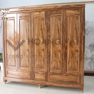 Tủ Quần Áo Gỗ Hương Xám 5 Cánh Đẹp TAHX002