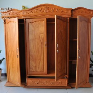 Tủ quần áo gỗ gõ là một trong những sản phẩm nổi bật được lựa chọn nguyên liệu gỗ kỹ lưỡng. Gỗ gõ đỏ được chọn để sản xuất tủ quần áo nữ hoàng cánh lồi đều là những khối gỗ dày và cứng nhất. Điều này đảm bảo độ chắc chắn và độ bền cho chiếc tủ, không bị cong vênh khi không may bị va đập.