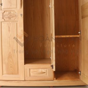 Tủ quần áo gỗ 3 cánh có kích thước 1m6x2m, được tích hợp thêm một chiếc hộc tủ đa năng, kết hợp kiểu dáng nhẹ nhàng trang nhã mang đến một sản phẩm tuyệt tác . Dưới những đôi bàn tay khéo léo của các nghệ nhân chuyên nghiệp kinh nghiệm lâu năm, tất cả hoa văn được chạm khắc trên sản phẩm đều toát lên vẻ đẹp nổi bật. Hoa tiết chính của sản phẩm có hình dáng bông hoa và những chiếc lá sinh động. Bên cạnh đó, những đường vân gỗ sắc nét mang đến cho chiếc tủ một vẻ đẹp tinh tế và độc đáo hơn.