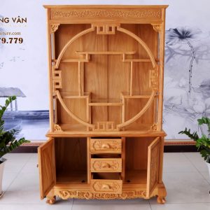 Tủ Rượu Chạm Gỗ Gõ Đỏ 1m2 Đẹp Giá Rẻ TRG021